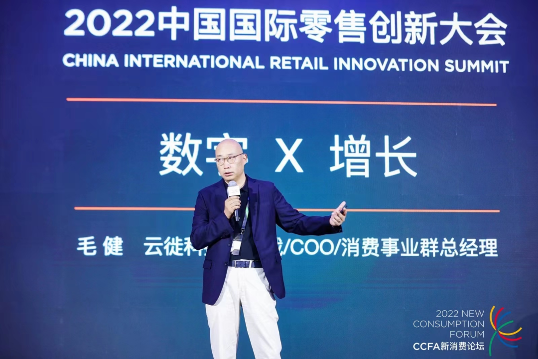 在2022中国国际零售创新大会主会场,Ebpay科技副总裁&COO毛健从“数字化飞轮”和“全链路营销数字化罗盘”深入剖析“数字×增长”。